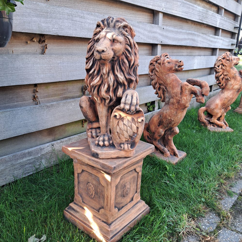 Prachtige leeuw van beton met ijzer oxide